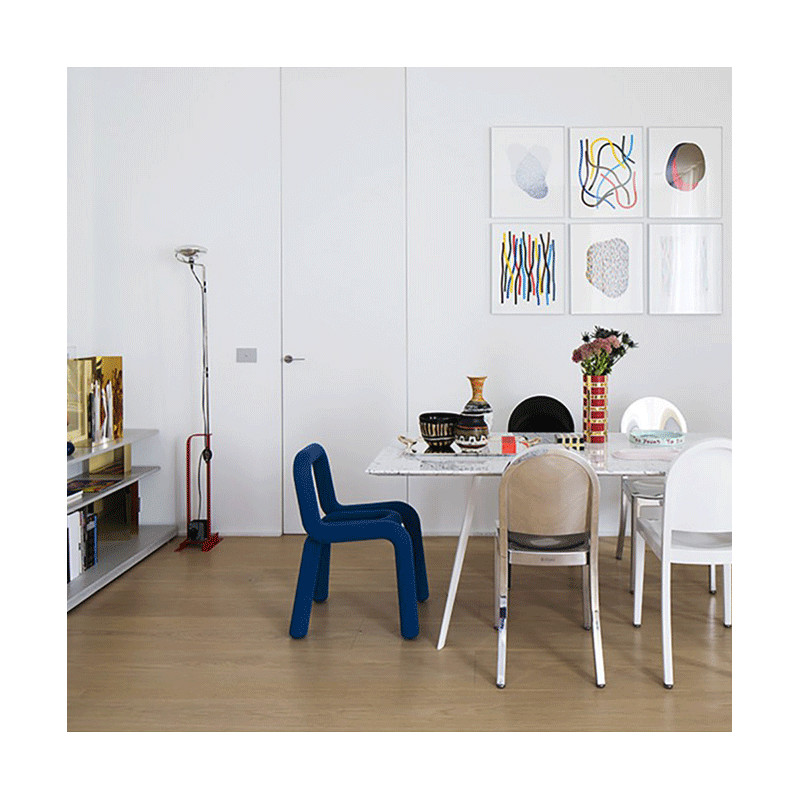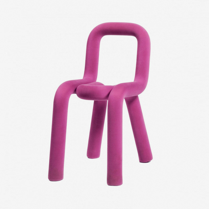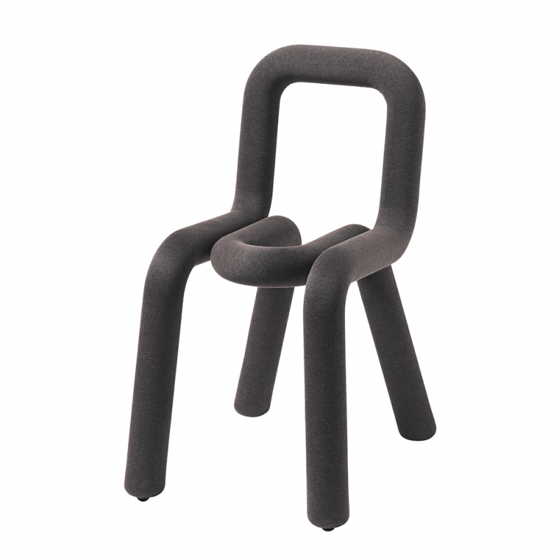 All at once, like the Linea by Osvaldo Cavandoli and thickened like the typeface to which a grease is applied, the Bold chair succeeds in saving seat and back.
