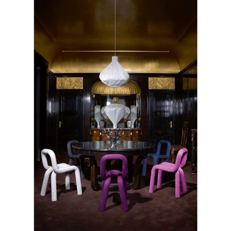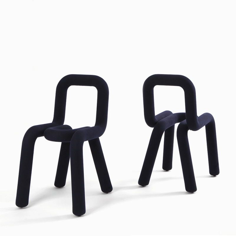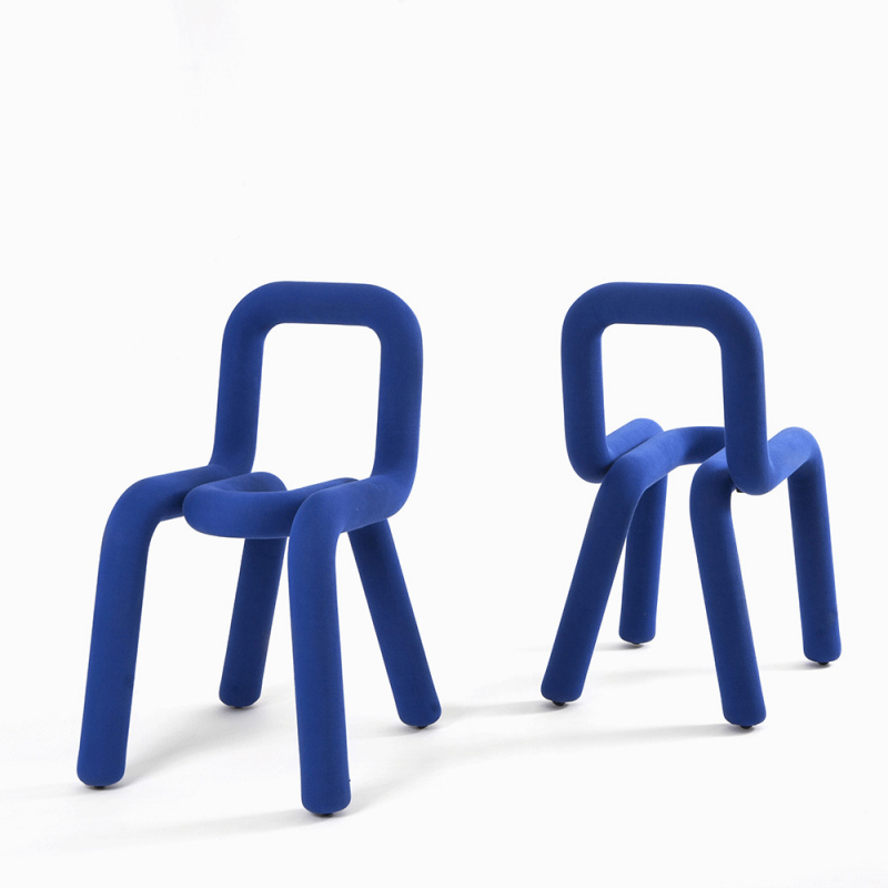 Composed of 2 tubular metal parts nested one inside the other, the Bold chair updates the tradition of the steel tube chair. Inflated with a thick polyurethane foam, the line drawn by the Bold successively plays the role of foot, seat then back and provides it with surprising comfort.