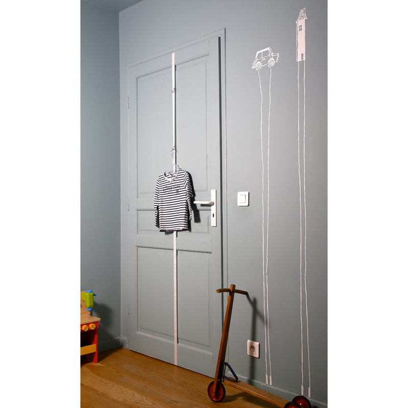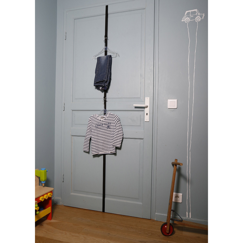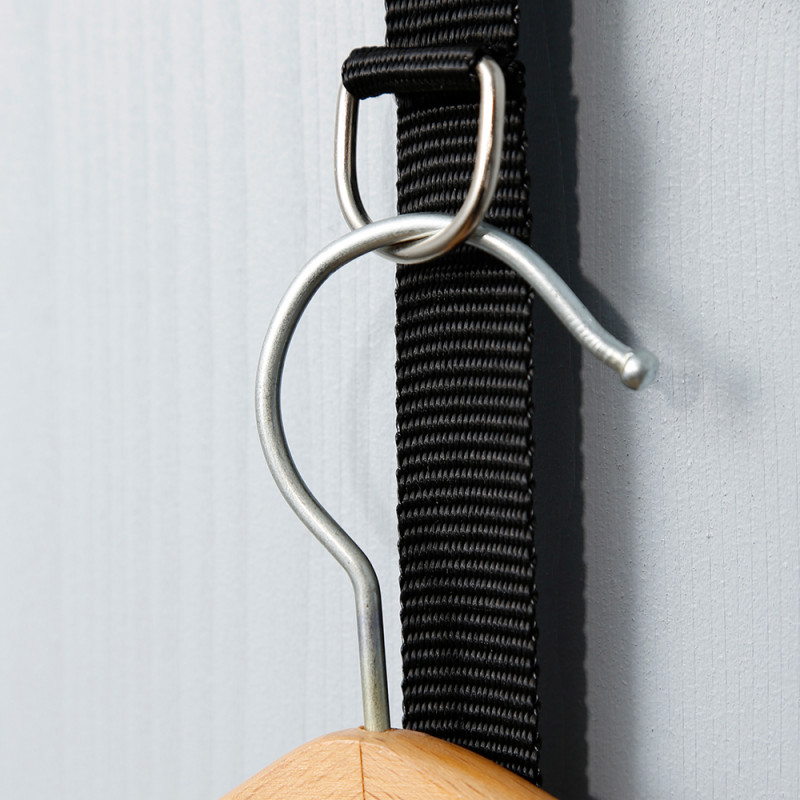 Strap with hooks available in 3 colors which allows you to transform your doors into a nomadic wardrobe.