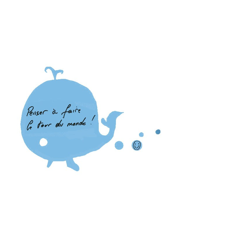 Self-adhesive erasable board made up of a whale and small sky blue bubbles