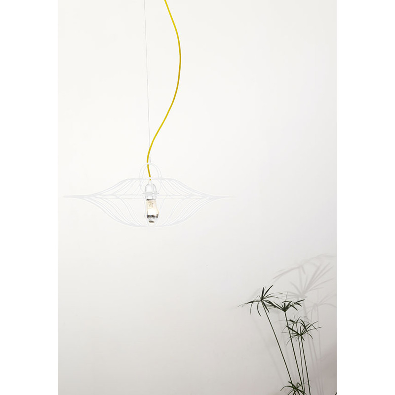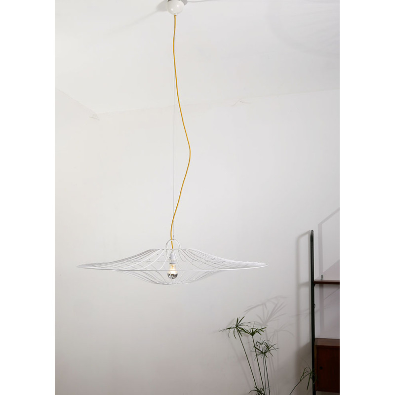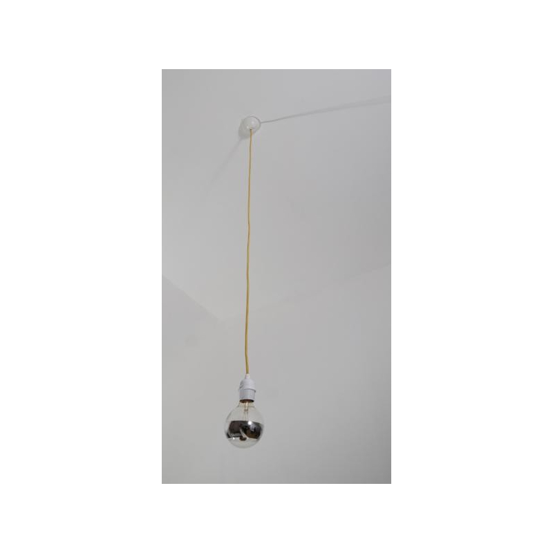 A yellow or white textile cable embellished with a socket for E27 bulb and a lacquered metal ceiling lamp coordinated to create its luminaires: used alone or in groups, this suspension will be the most beautiful effect.