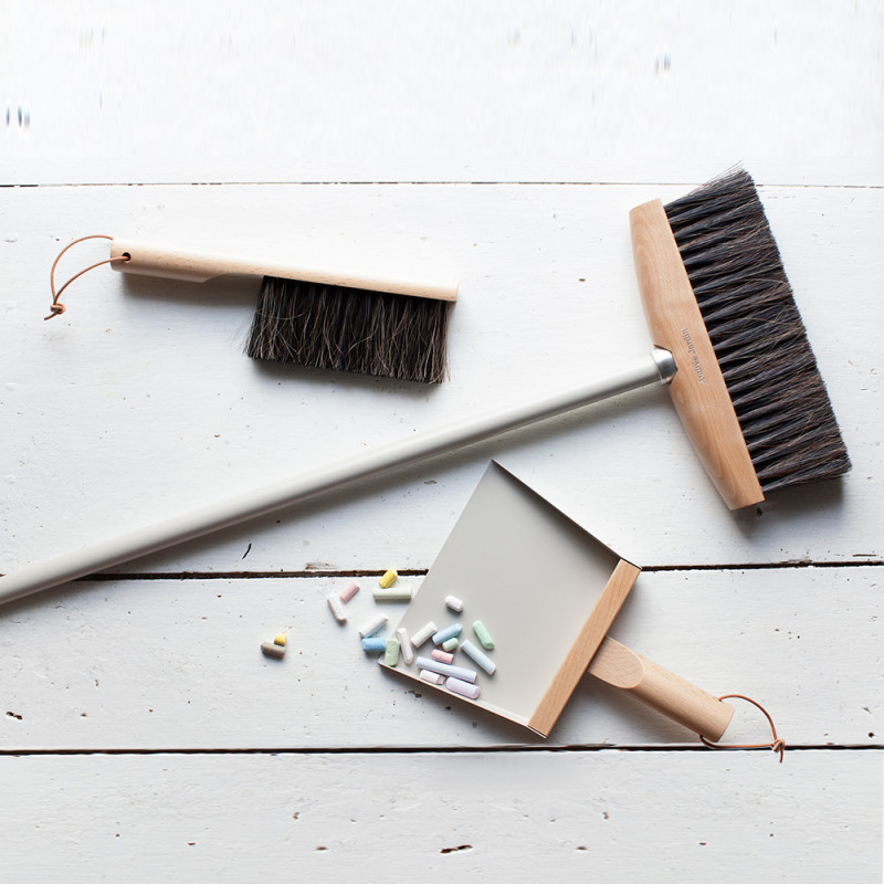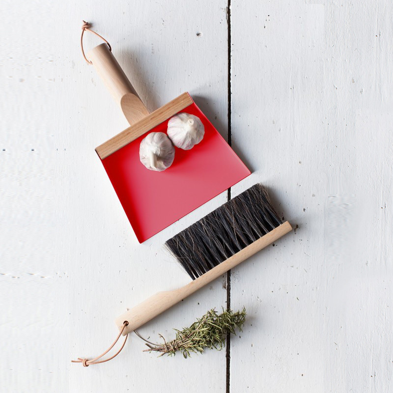 Clean lines of lacquered metal and nobility of beech wood and leather, this dustpan will give your household accessories a whole new status!