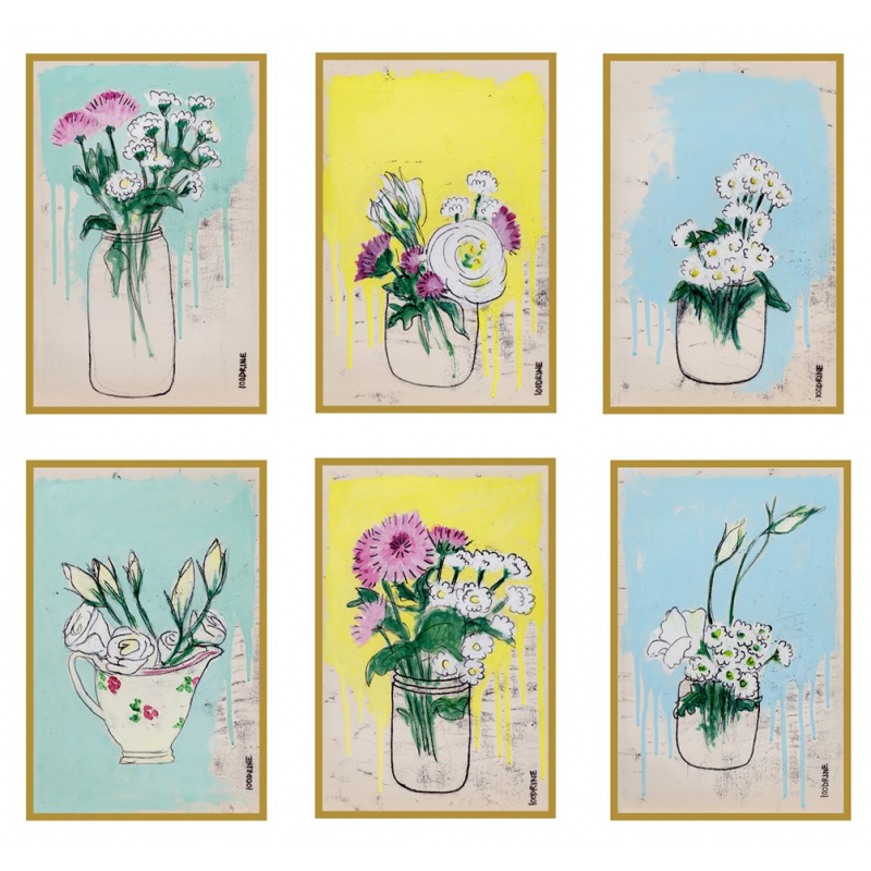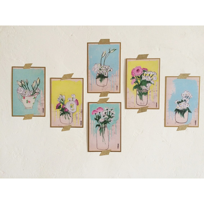 Collection of 6 coordinated postcards on the theme of bouquets by 100DRINE