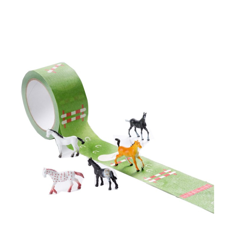 Take-away game consisting of a roll of tape featuring grass and 2 horse figurines