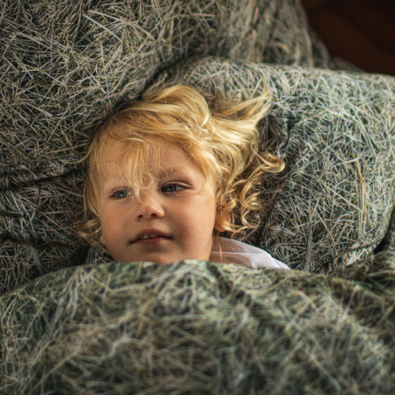 These bed linen collections very realistically incorporating a layer of hay, resonate differently in each one according to their history and memories ... but all will find a certain serenity and will be able to catch themselves playing in the pattern small insects, animals or objects scattered there ...
