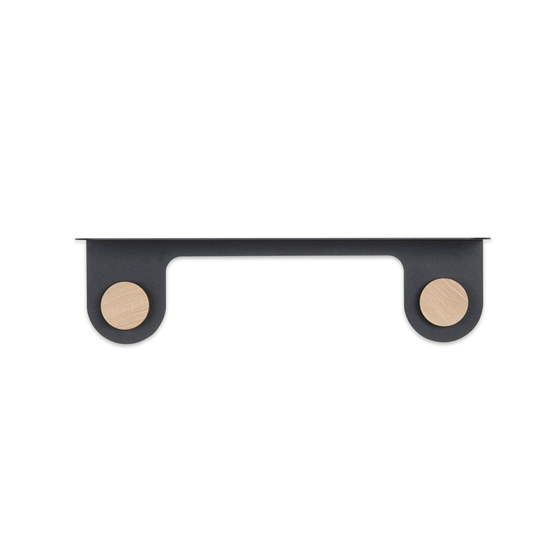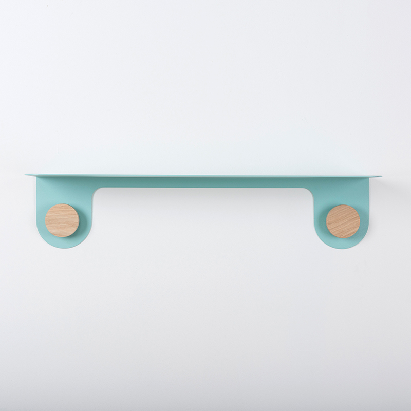 This colorful metal shelf with pretty finishes is embellished, at each end, with an oak hook that will allow you to hang your clothes and personal effects. Ideal in an entrance or in a bedroom, you can also use these solid oak elements as a pure decorative effect or, by installing it upside down, as a bookend for example ...