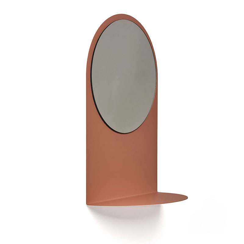Mirror with folded lacquered metal shelf