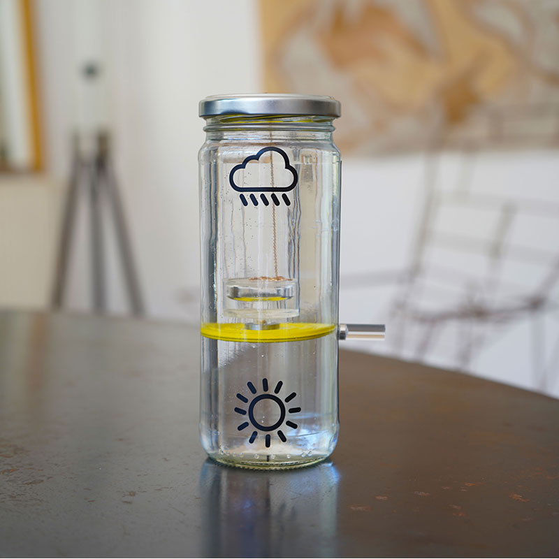 Designed according to scientific principles explained in the video here , this barometer is above all a 100% poetic object that will tell you absolutely reliably whether the weather will improve or worsen.