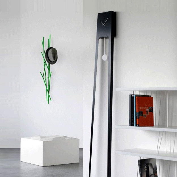 Horloge en acier peint qui se décline en 4 couleurs subtiles : Un certain Rose, un certain vert, vraiment gris ou très bleu Mécanisme silencieux Dim. : 11cm x 6cm x 28cm Design Van Tjalle en Jasper