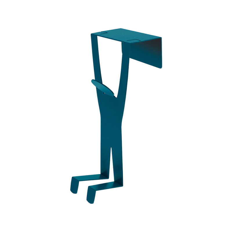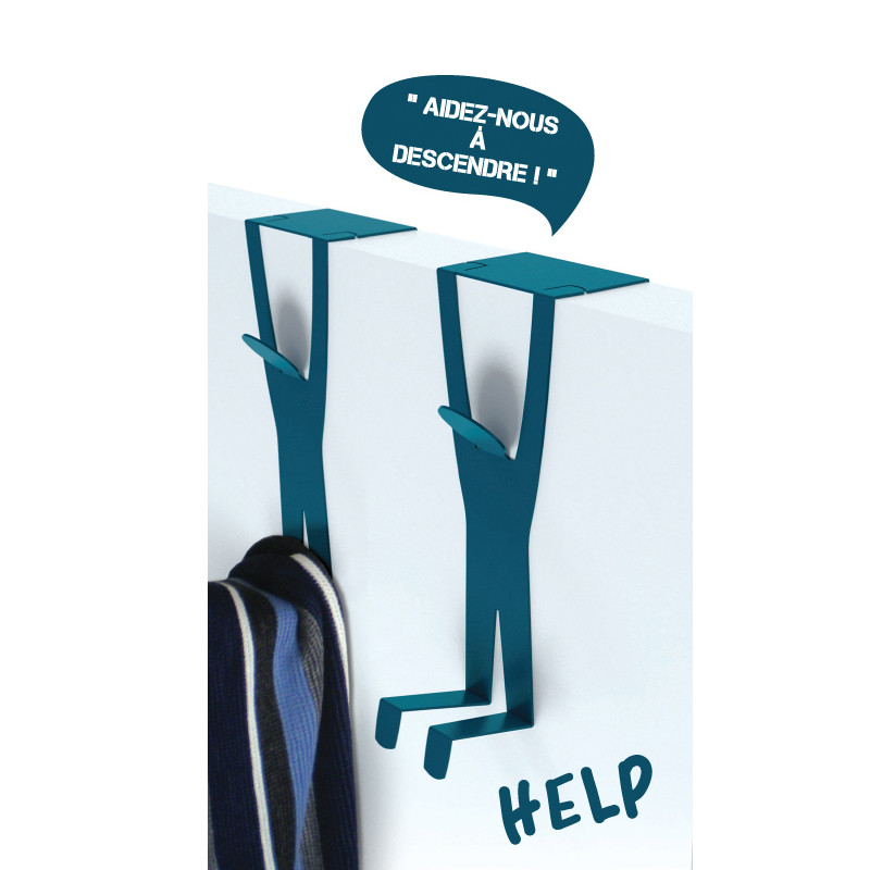 Ce petit personnage de la collection Coup d'Pouce suspendu à votre porte semble vous crier "Help"... ? Il n'en est rien : il portera sans souci tous vos effets personnels...
