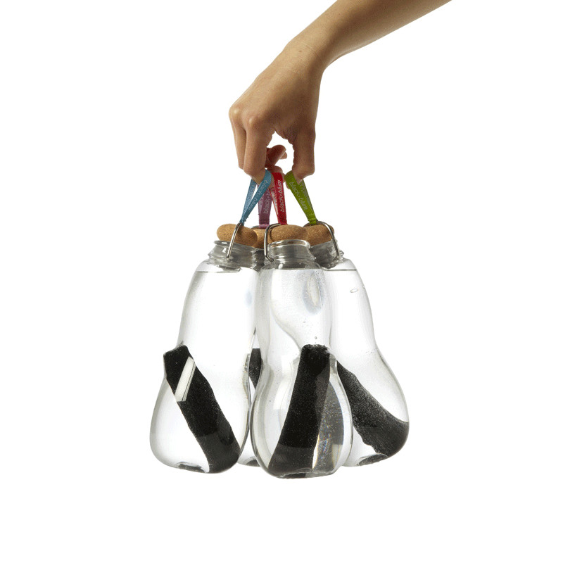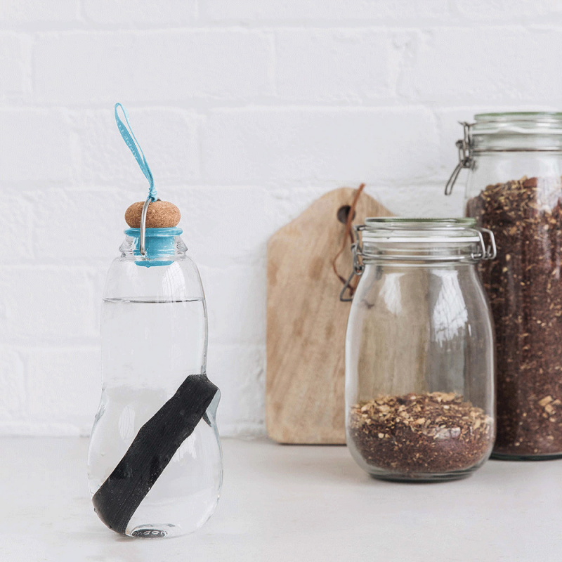 Cette gourde utilise le filtrage naturel du charbon "Binchotan" pour transformer le goût de l'eau du robinet : un moyen économique et écologique pour emporter partout sa petite bouteille d'eau.