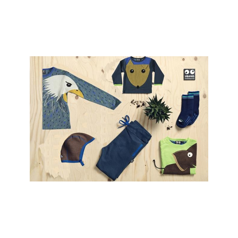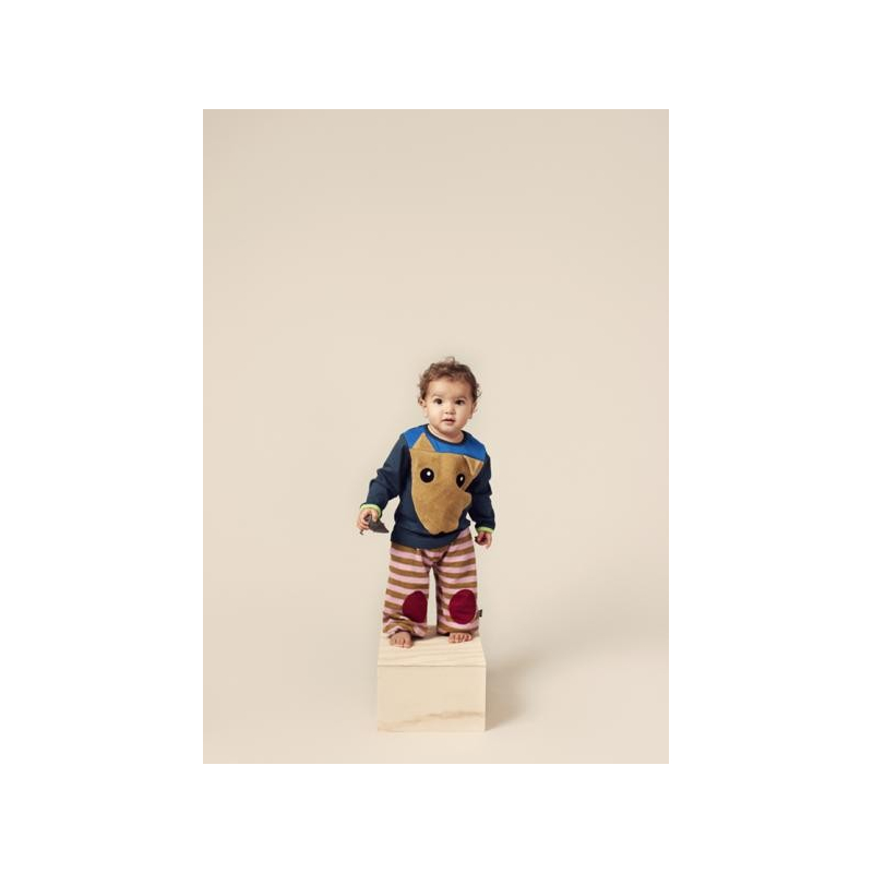 Concevoir les vêtements comme un élément d'éveil et de jeu c'est la position de la marque danoise Ubang... Et ce T-shirt avec une tête de souris vous offre donc des matières différentes entre le T-Shirt en lui-même et la tête de souris et une de ses petites oreilles est mobile... Les bébés vont adorer !