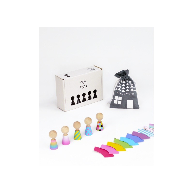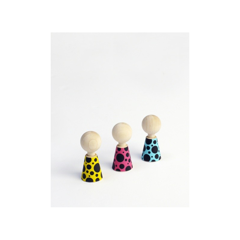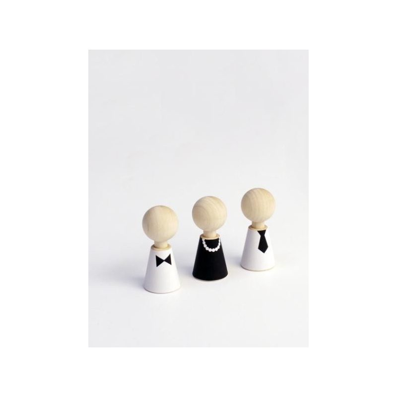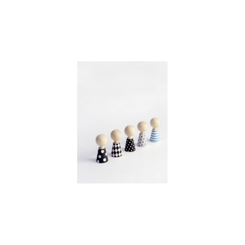 | Matière | 5 poupées en érable massif dans un sac de coton + 36 vêtements de papier |