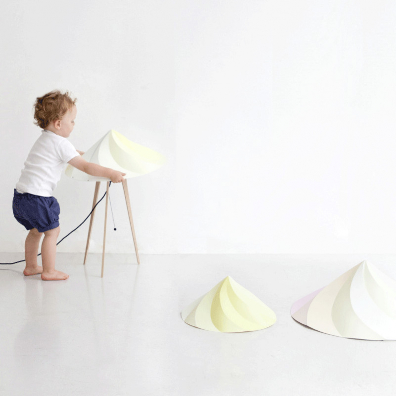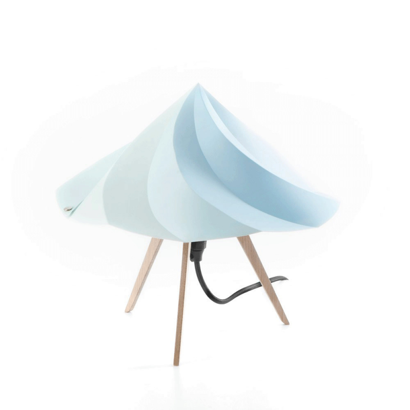 Lampe constituée d'un piètement en multiplis de chêne et d'un abat-jour en polypropylène recyclé