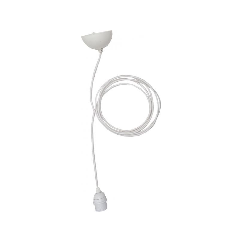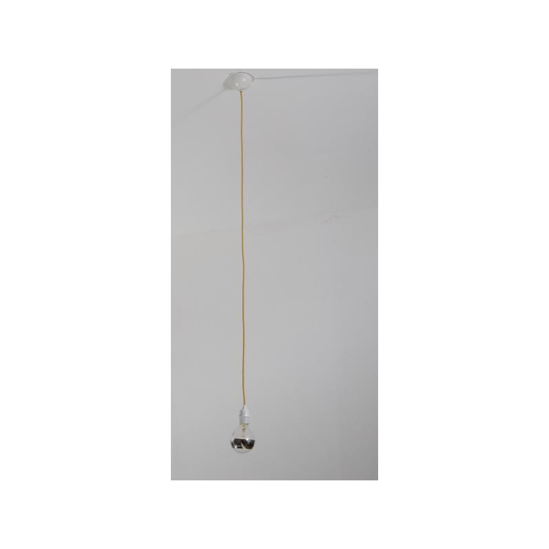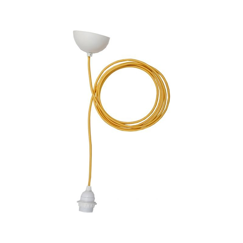 Un câble textile jaune ou blanc agrémenté d'une douille pour ampoule E27 et d'un plafonnier en métal laqué coordonné pour créer ses luminaires : utilisé seule ou en groupe, cette suspension sera du plus bel effet.