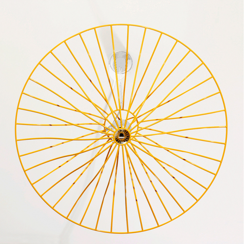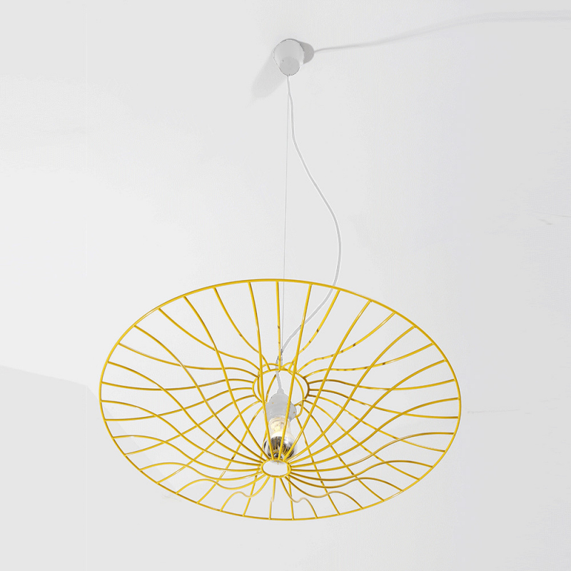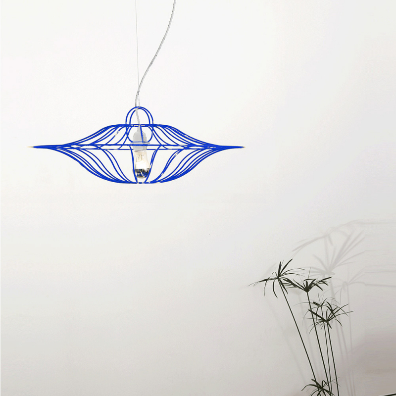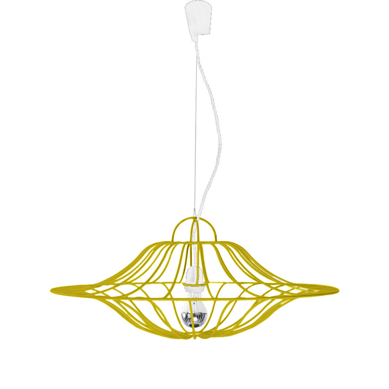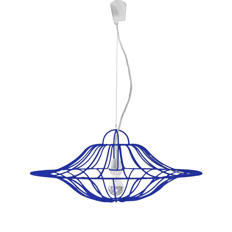Réalisée en fil d'acier laqué, sa structure jaune (RAL 1023) ou bleu (RAL 5002) vous pouvez la compléter avec les sets de câblage disponibles en blanc et en jaune sur ce lien.
