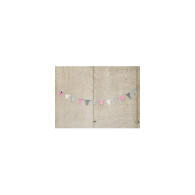 Les fanions sont dans les tons blanc, gris, noir et rose