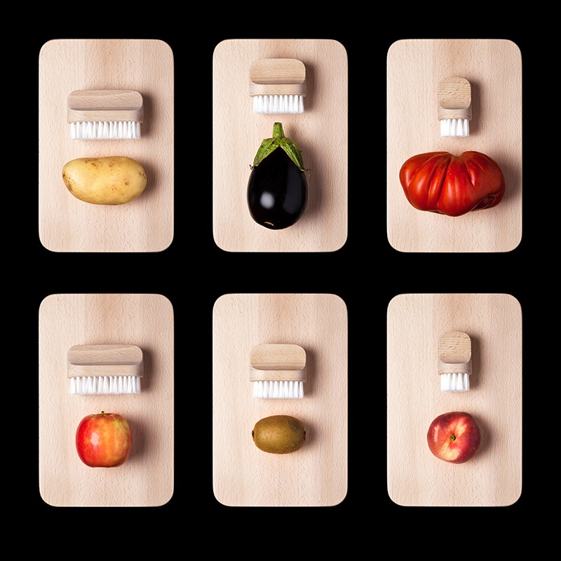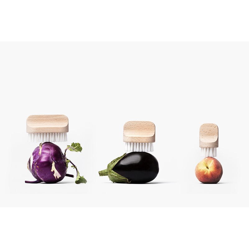 Brosses à légumes design en bois de Hêtre brut et Fibres Polyamide