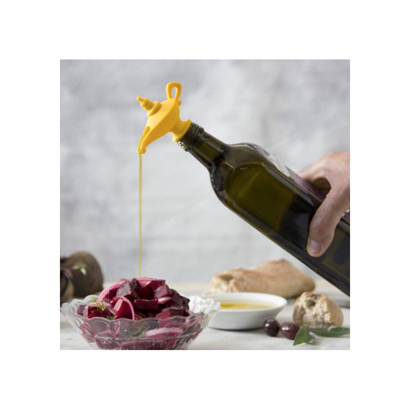 Cette lampe à huile légendaire vous accordera trois souhaits : verser facilement de l'huile d'olive, garder la fraîcheur du produit grâce à un joint intelligent et ses deux positions (ouvert ou fermé) et vous ravir les yeux d’une esthétique magique qui ajoute du charme à votre bouteille! Oiladdin va devenir rapidement indispensable!