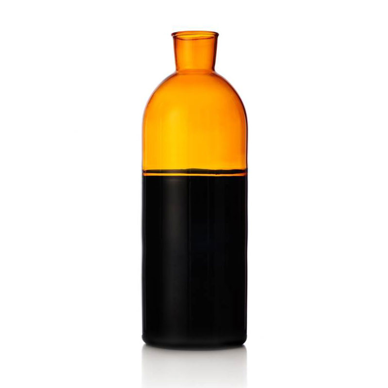 Carafe en verre coloré sans bouchon.