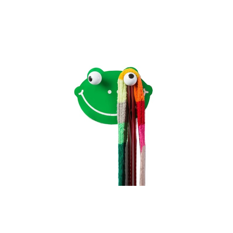 Composé d’un sticker et de deux boules / patère / oeil Hooky se décline en plusieurs modèles : ici la grenouille toute verte apportera un peu de peps à votre déco !