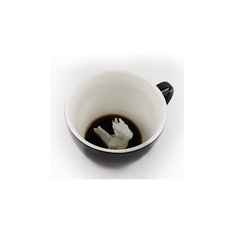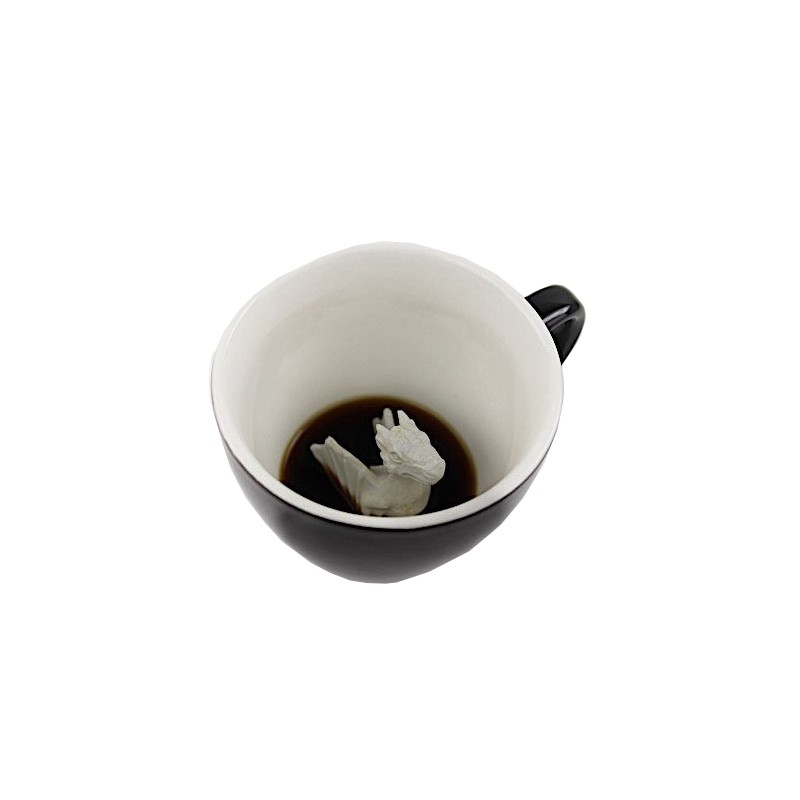 Avec ces tasses en porcelaine, la marque New-Yorkaise Creature Cups préserve le suspense : pleine, cette tasse bleu cobalt pour l'écureuil semble "normale" mais au fur et à mesure que le liquide disparaît c'est un animal sculpté en porcelaine blanche, surgissant du fond de la tasse qui émerge ... L'effet est saisissant !