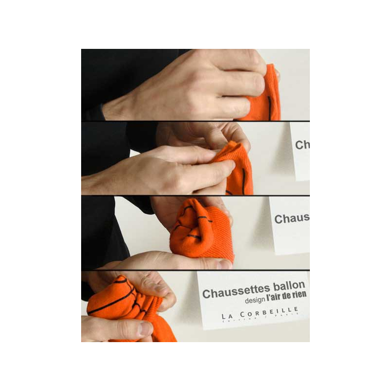 Ces paires de chaussettes imitent soit un ballon de basket, soit un ballon de foot lorsqu'elles sont mises en boule: pour se faire plaisir ou pour un cadeau clin d'œil à petit prix...