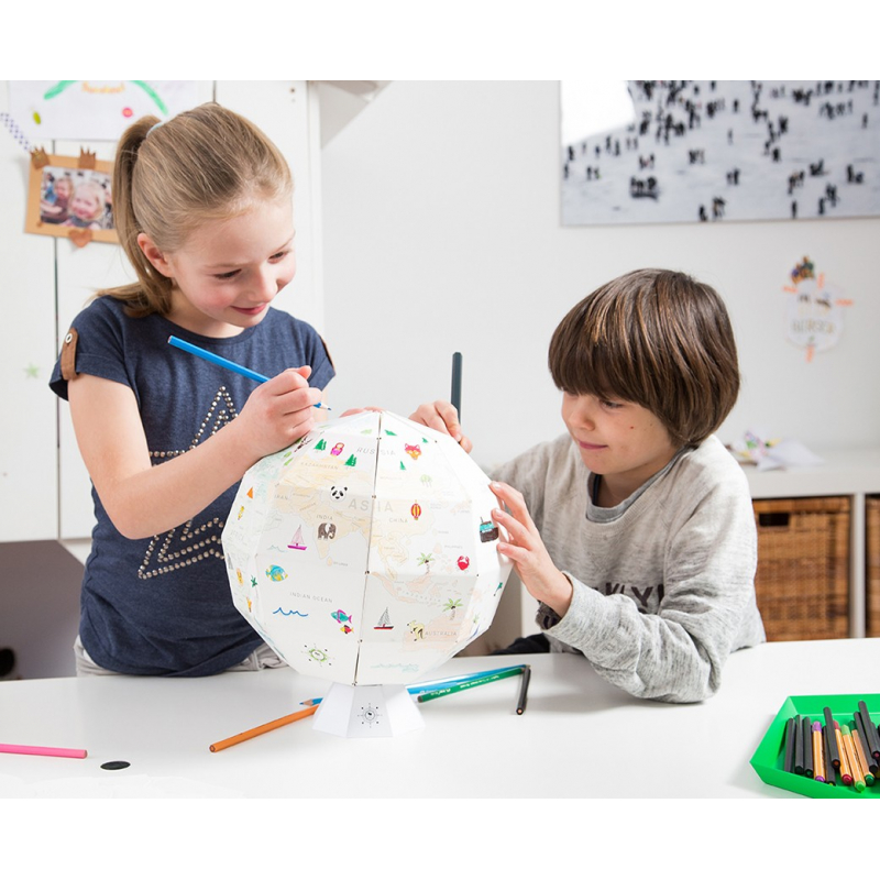 Végétation, animaux et bien sûr les noms de chacune des régions du monde figurent sur cette mappemonde à colorier de la marque Donkey Product : pour apprendre les grandes lignes de la géographie tout en s'amusant.