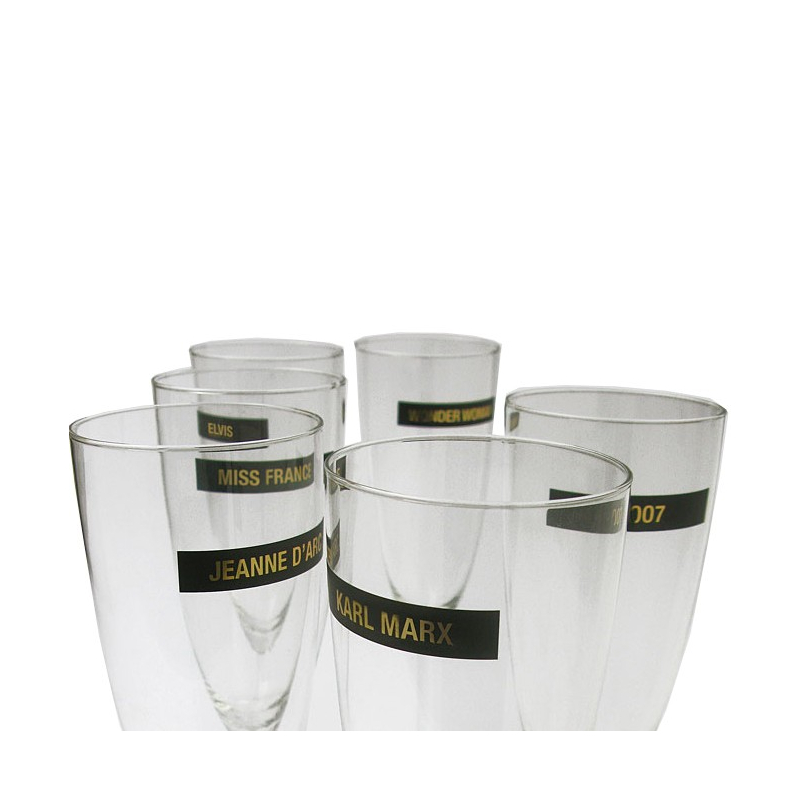 Stickers pour différencier les verres marqués au nom de 120 personnalités (60 hommes et 60 femmes)