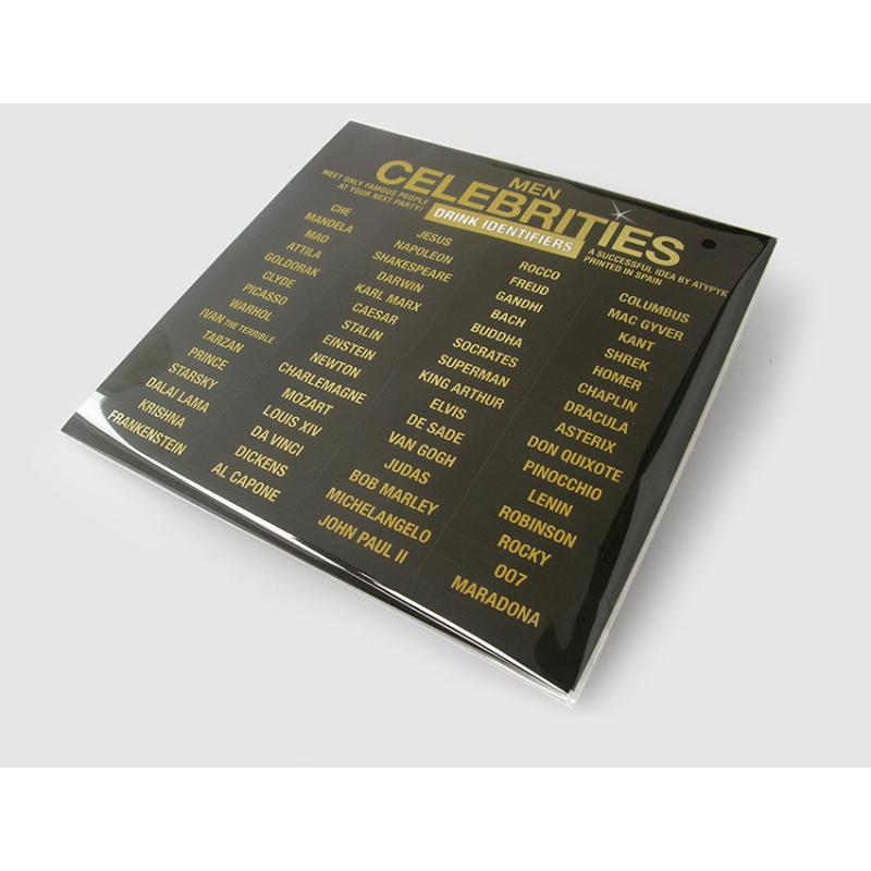 Avec ces stickers Célébrités de la marque Atypyk, vous ferez se rencontrer lors de vos soirées des personnalités aussi fameuses que Che Guevara et Princesse Leia, Mac Gyver et Lady Gaga...