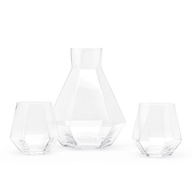 Avec cette carafe en forme de diamant, un jeu se noue entre le liquide, le verre et le liquide pour créer des effets de lumière et d'optique raffinés.