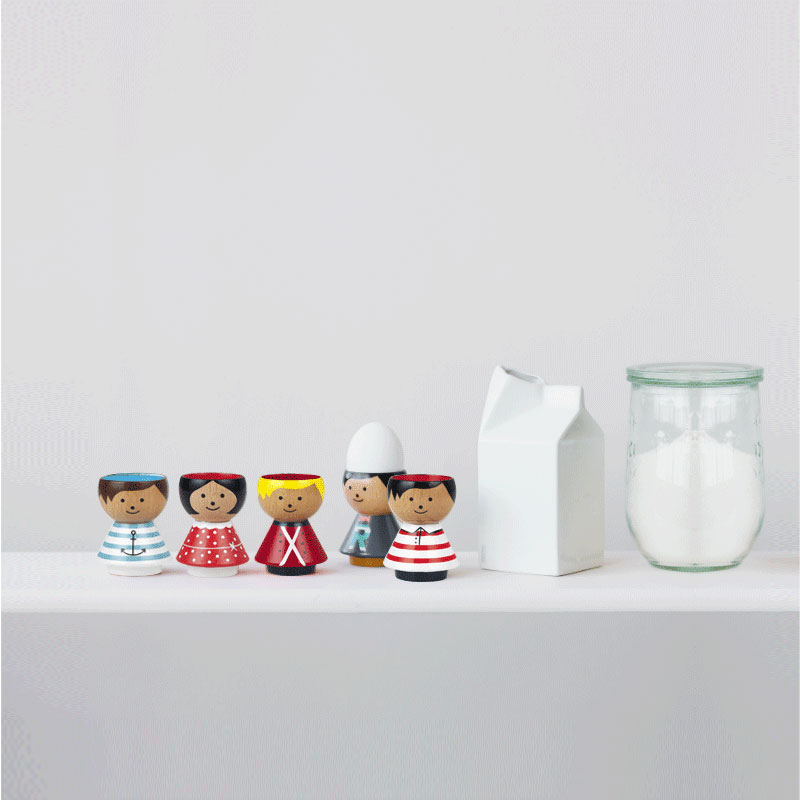Ces coquetiers en bois de la marque danoise Lucie Kaas se déclinent ici en 5 modèles de garçon au choix... Lequel préférerez-vous ?