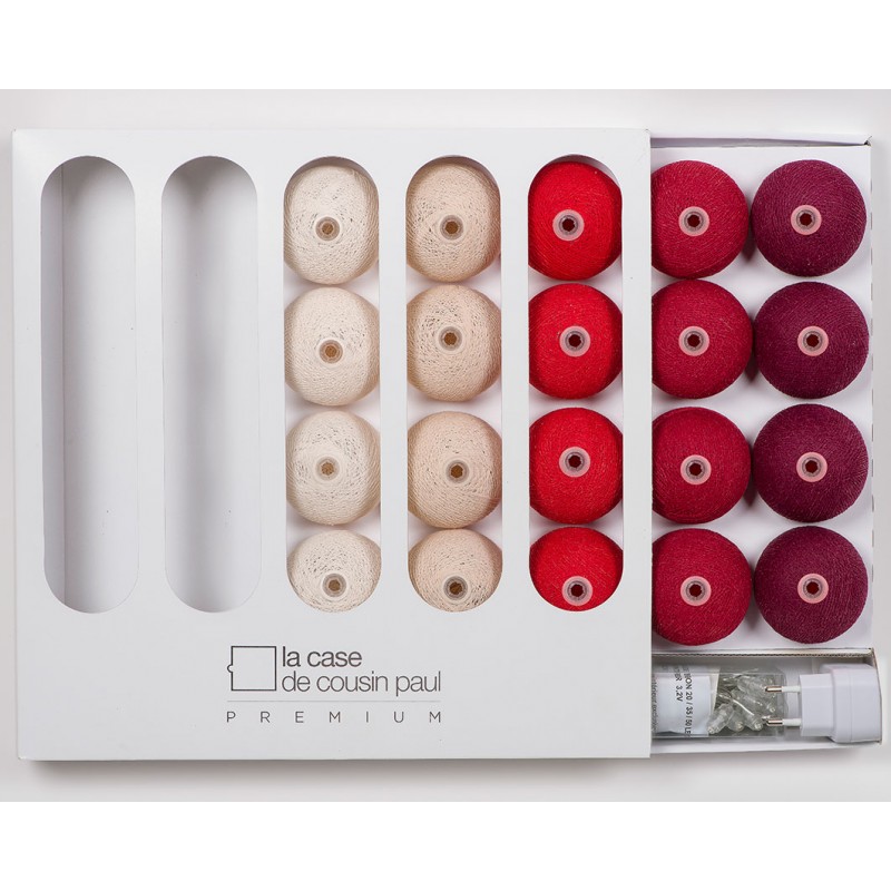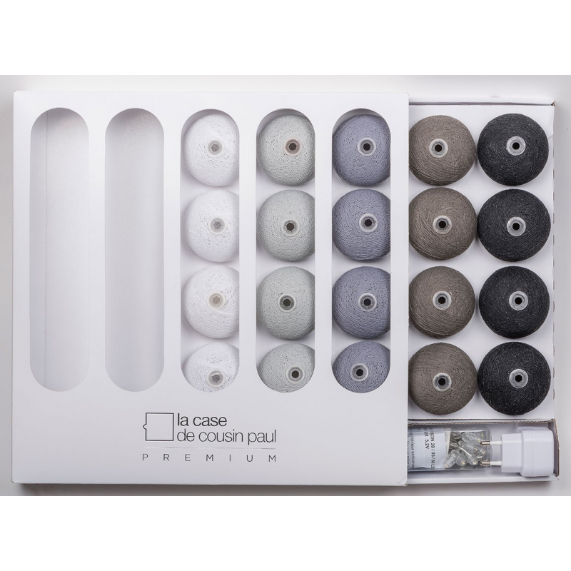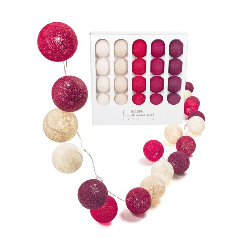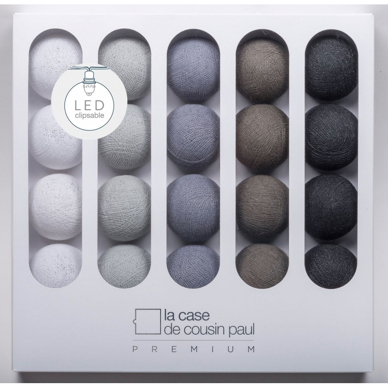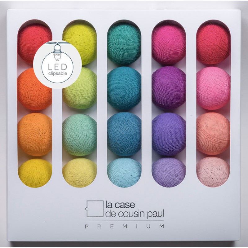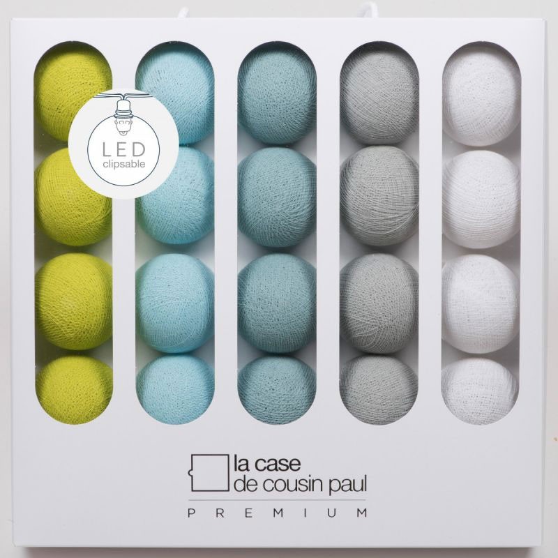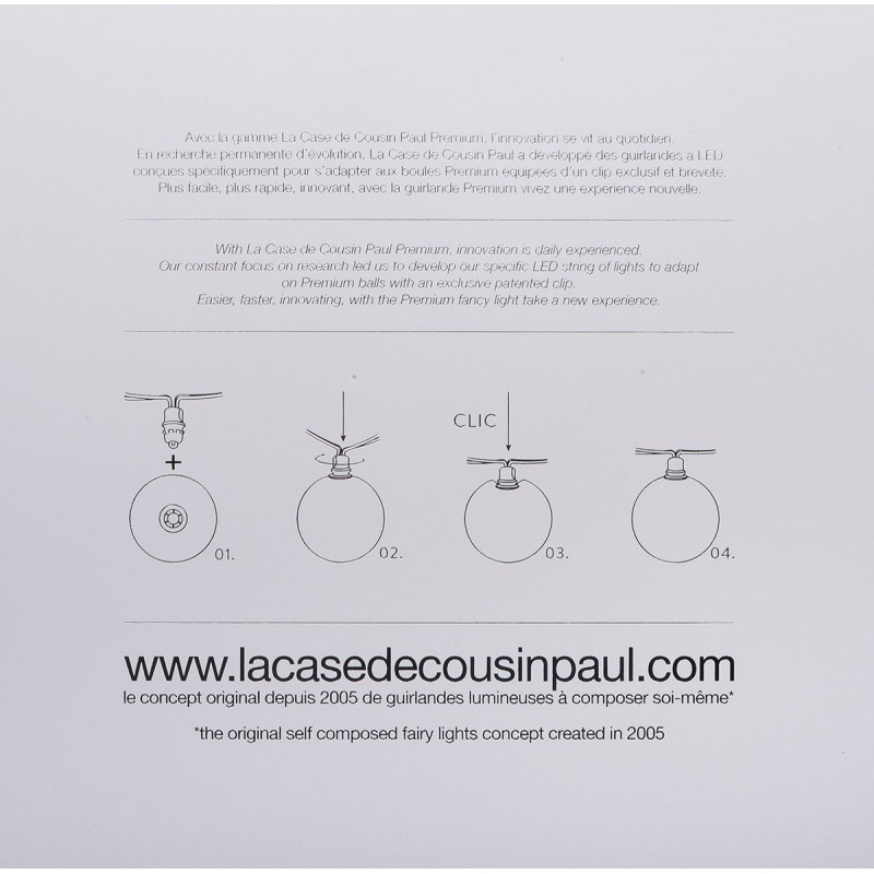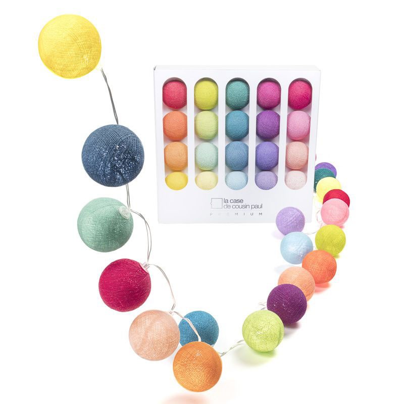 Cette guirlande lumineuse Premium de la marque française La Case de Cousin Paul est constituée de 20 boules en fil de polyester de 7 cm de diamètre, équipées d'un clip exclusif et breveté.