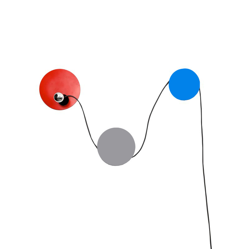 Épurée, son style naît de l’effet graphique des différents éléments qui la constituent : les 3 disques en métal laqué qui servent de support + l' ampoule + le fil d’alimentation électrique.