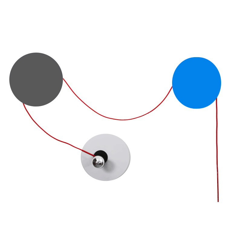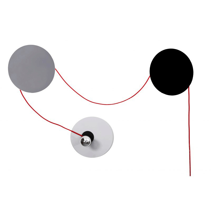 Chacun des disques peut servir de support au point lumineux et le câble électrique est à la fois fonctionnel et élément de décoration.