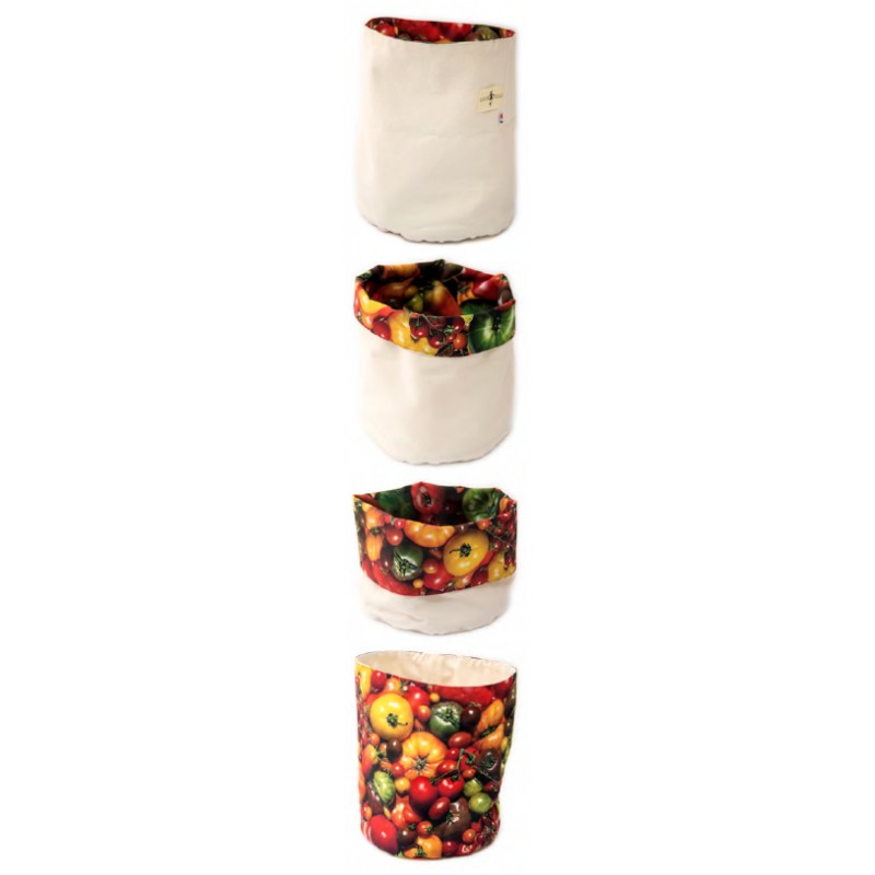 Ils se déclinent en plusieurs motifs/usages : pommes de terre, pommes, aubergines et autres légumes du soleil ou tomates