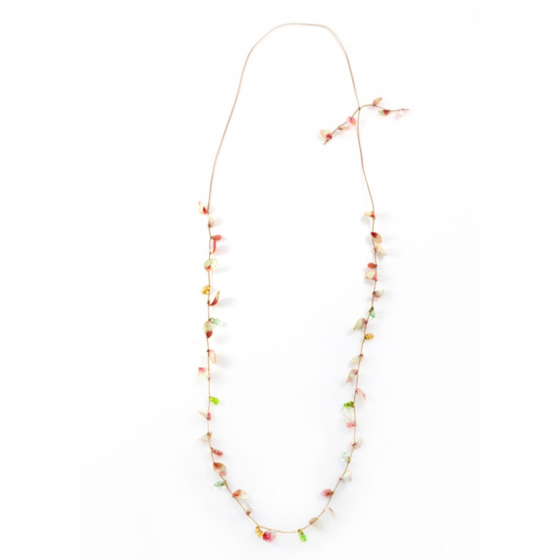 Pour éclairer une tenue sombre ou s'assortir à vos vêtement teintés de couleurs douces, ce sautoir "Pétales" fera souffler un brise printanière chargée de poésie et d'originalité !