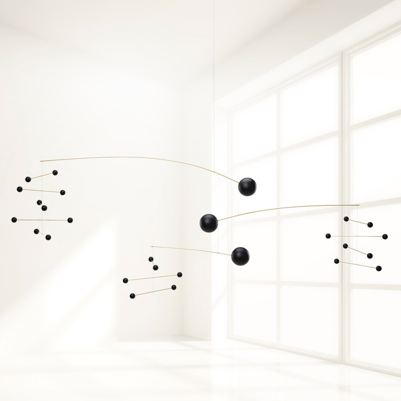 Le designer danois Ole Flensted a créé ce mobile "Symphonie" en 1972 en écoutant Mozart... Sa version architecturale proposée ici, existe quant à elle seulement depuis 2018...