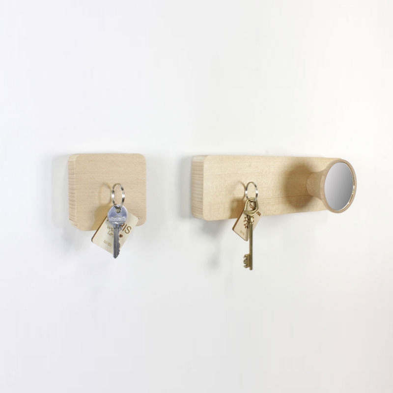 Ce porte-clef magnétique Newton sera du plus bel effet dans votre entrée et vous rendra bien des services : il accueillera en toute simplicité vos clefs grâce à sa surface aimantée (un aimant puissant est dissimulé derrière une façade en bois...) et sa patère miroir pourra elle-aussi accueillir vos effets personnels légers et vous permettra de checker votre tenue une dernière fois avant de sortir...