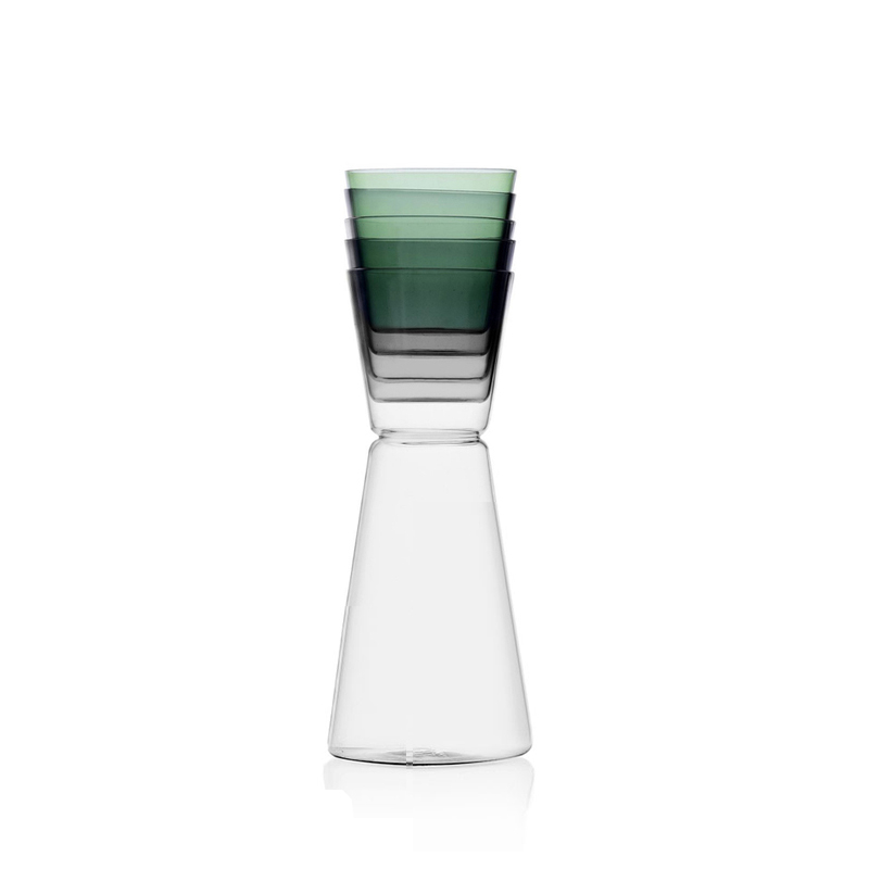 Avec sa forme élégante et minimaliste, cette carafe High Rise séduira les amateurs de beaux objets. Elle offre toutefois un usage supplémentaire, à la fois malicieux, esthétique et pratique : son goulot évasé permet d'y accueillir empilés les verres de la même collection : pour le stockage, le transport vers la table... mais aussi pour un effet décoratif si vous optez pour des verres de couleurs différentes !