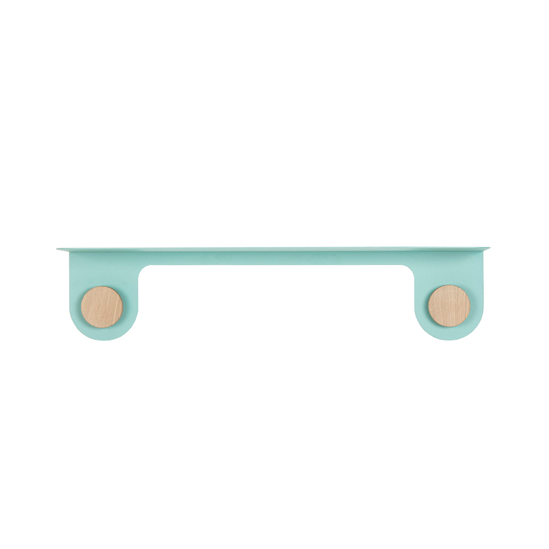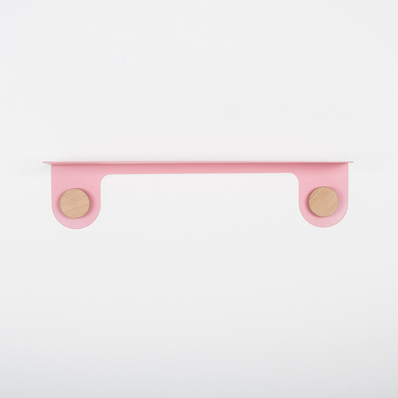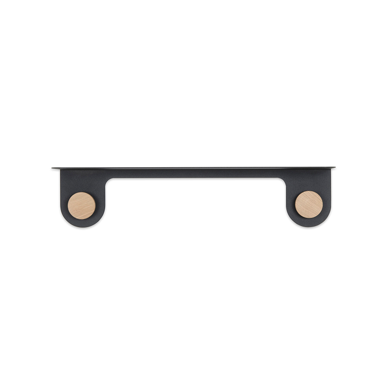 Etagère en métal epoxy agrémentée de deux patères en chêne à chaque extrémité
