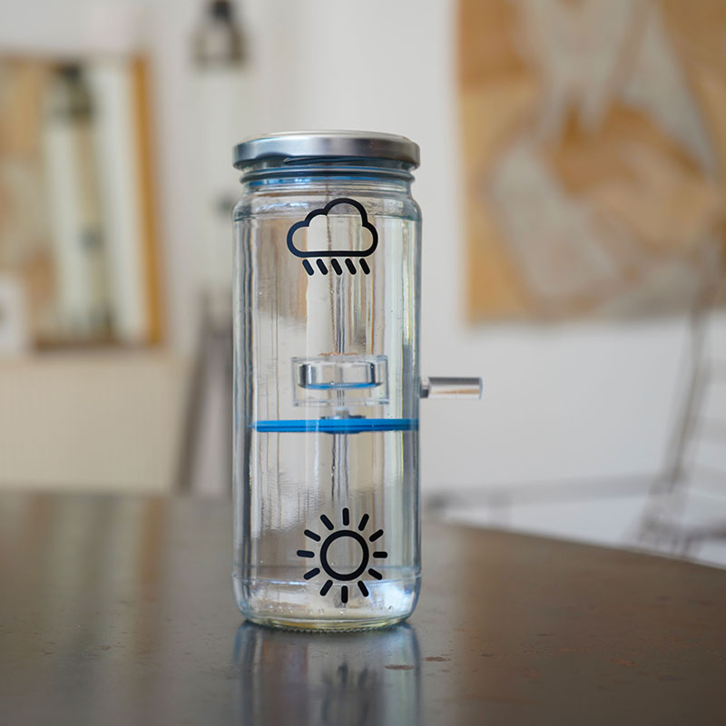 Conçu selon des principes scientifiques expliqués dans la vidéo ici , ce baromètre est avant tout un objet 100% poétique qui vous indiquera de manière absolument fiable si le temps va s'améliorer ou bien empirer.