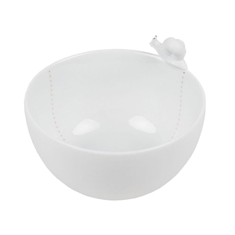 Avec ce joli bol en porcelaine, c'est toute la délicatesse de la nature qui s'invite chez vou. Avec sa finition mate à l'extérieur et son petit escargot en volume sur le bord, ce bol semble nous raconter une histoire que poursuivent les petites traces dorées dans l'intérieur émaillée du bol.