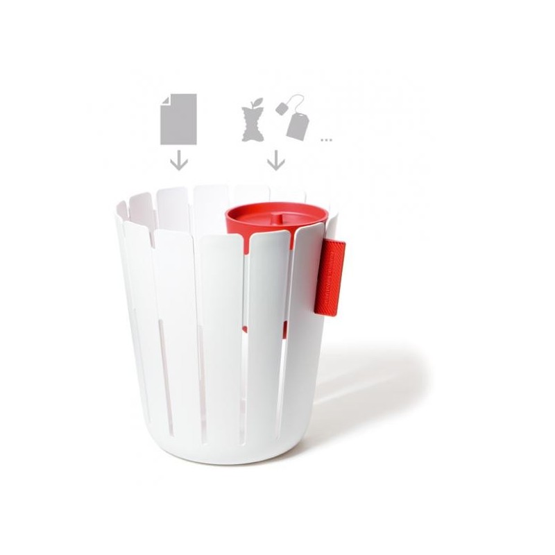 Jusquà présent, la séparation des déchets n'a jamais été très sexy. Avec ce petit pot qui peut s'adapter à votre corbeille BASKETBIN vous pourrez jeter séparément et en toute élégance, déchets secs et humides.