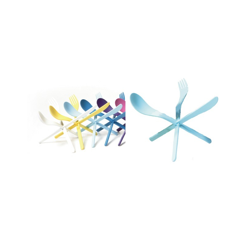 JOIN est plus qu’un couvert, c’est un décor de table qui se transforme en un couteau, une fourchette et une cuillère. Les convives sont fascinés par son assemblage magique. Rassurez vous, jusqu’à ce jour personne n’est mort de faim en déliant le nœud magique, un peu d’habileté et un bon coup d’œil sont juste nécessaires.